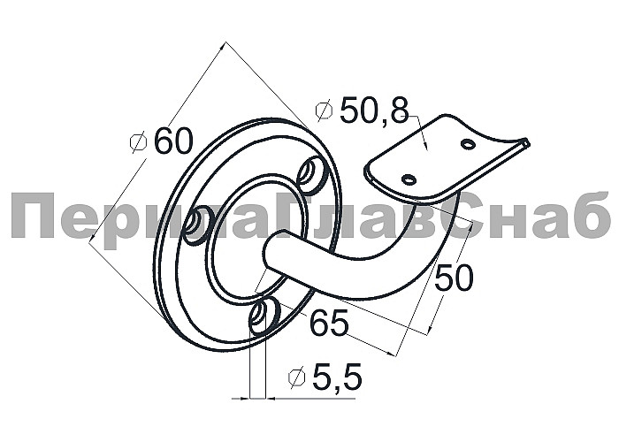 Пристенок с ложементом на плоскость, вынос 65х65, Ø60х3 мм, сварной, нержавеющая сталь AISI 304 полированная k234-5 купить в Красноярске