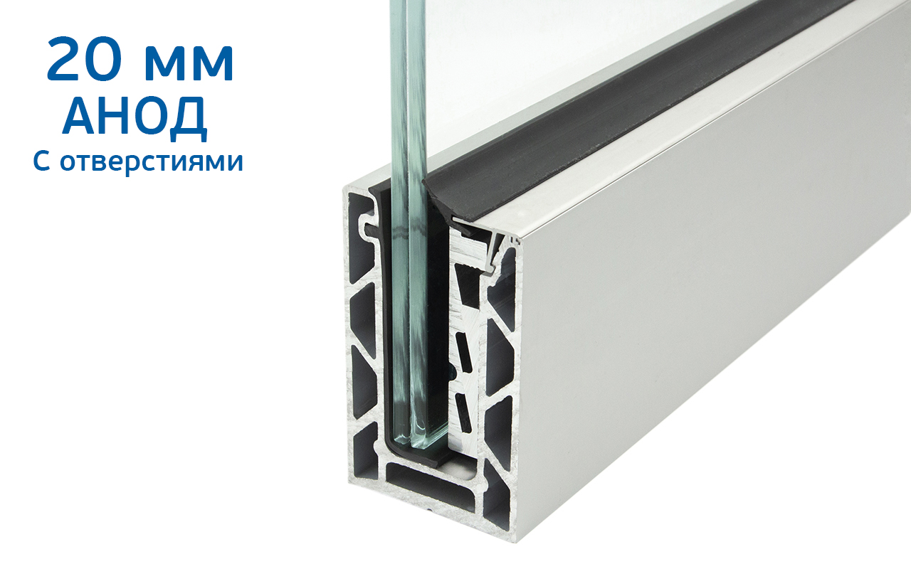 Комплект профиля зажимного для стекла 20мм и 10+10,с отверстиями, АНОД. алюминий 100х60мм, т100-1-20