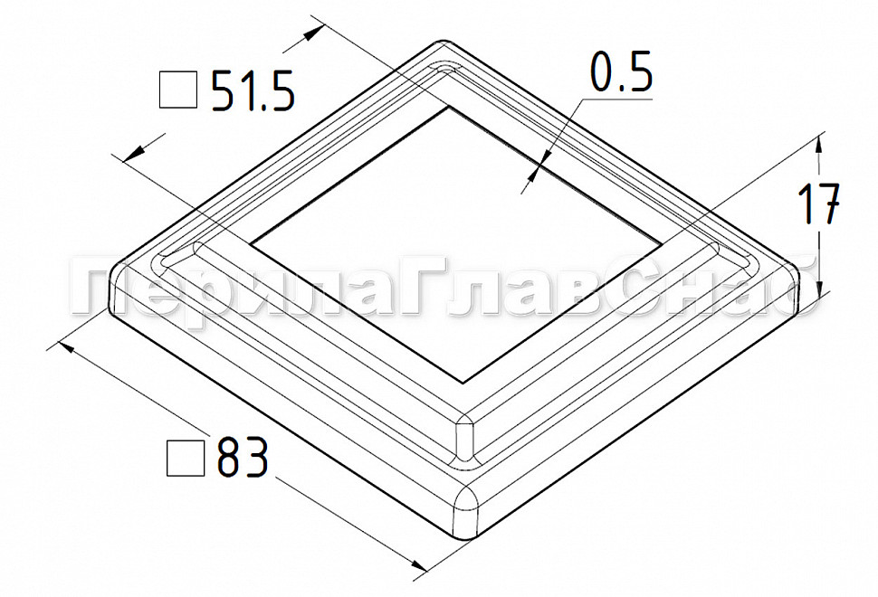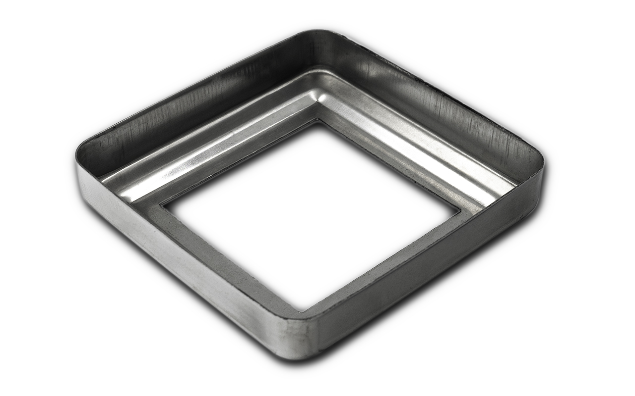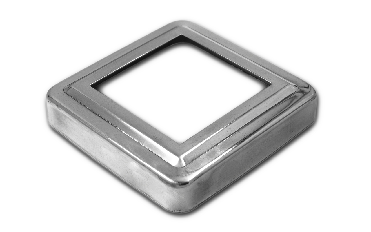 Низ стойки фигурный под трубу 50х50 мм, 83х83х0.5 мм, высота 17 мм, полированный (AISI 304) k375