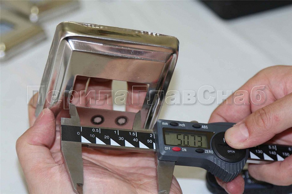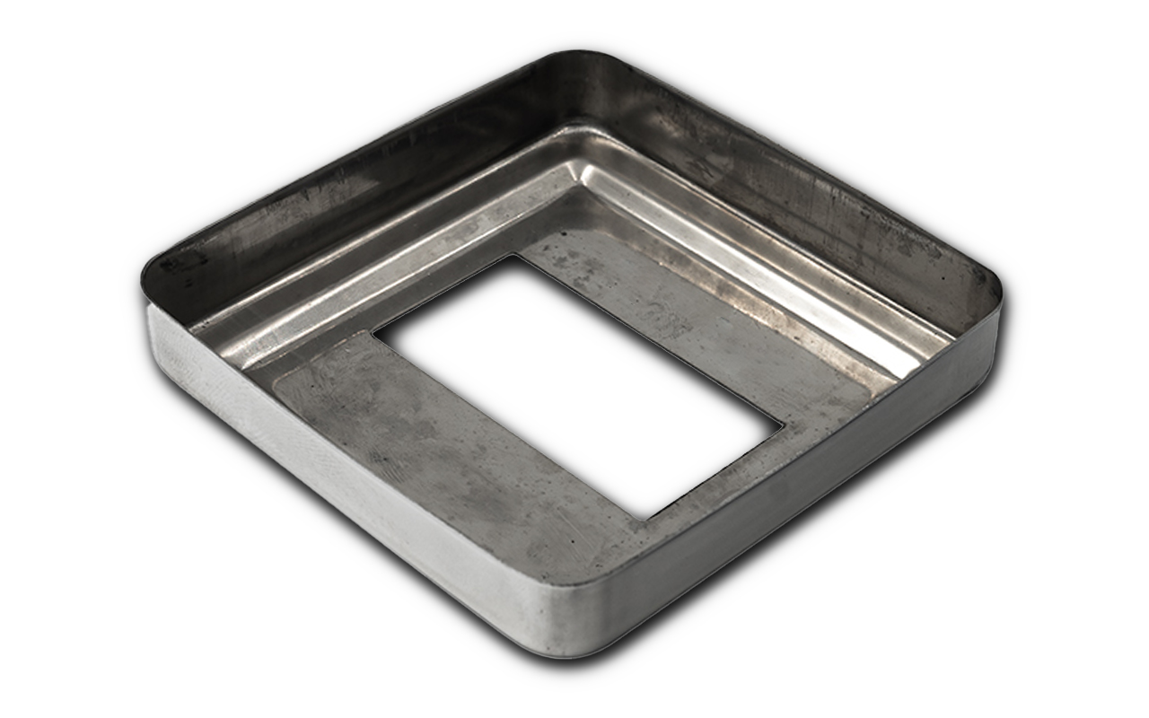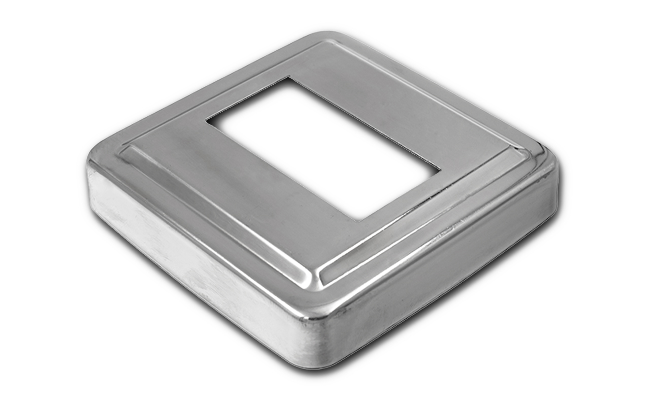 Низ стойки под трубу 50х25 мм, 84х84х0.6 мм, высота 17 мм, полированный (AISI 304) k398