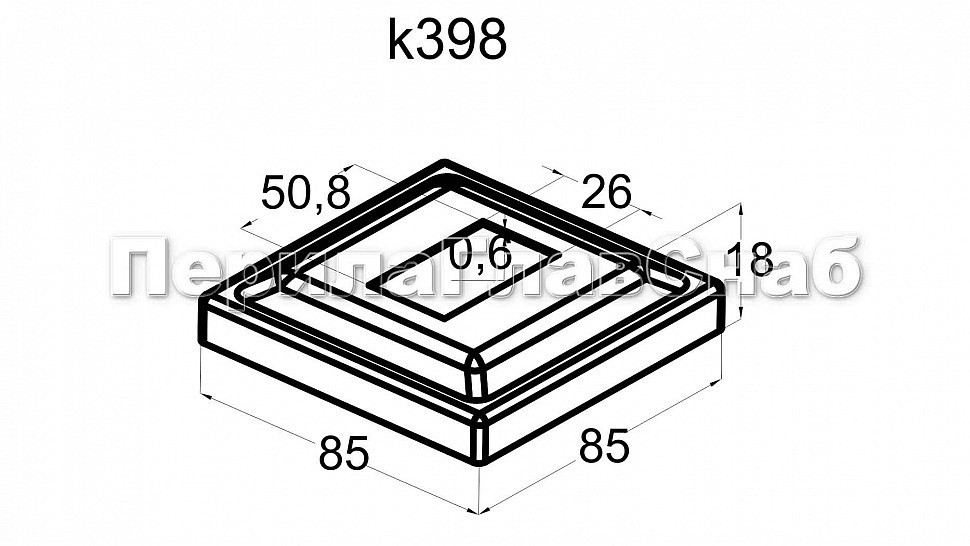Низ стойки под трубу 50х25 мм, 84х84 мм, S=0.6 мм