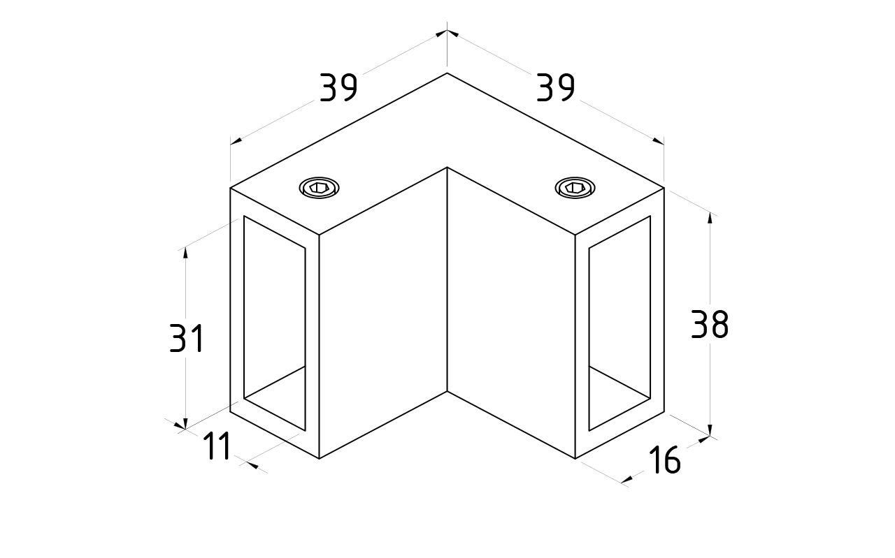 Соединитель предназначен для соединения труб 30х10 под углом 90º в горизонтальной ориентации. Для монтажа верхней обвязки душевых кабин, угловых раздвижных душевых перегородок.
