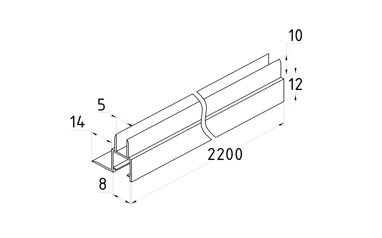 Уплотнитель для стекла 8 мм, непрозрачный черный, пол-стекло 2200 мм.