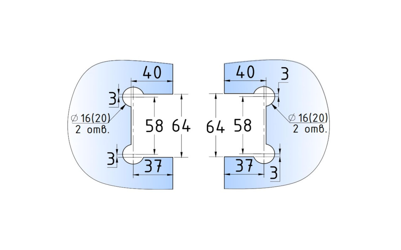 Крепление предусмотрено с двух сторон на 4 винта со шляпками заподлицо (по 2 винта на каждую сторону). Размер одной стороны петли составляет 90х55 мм.