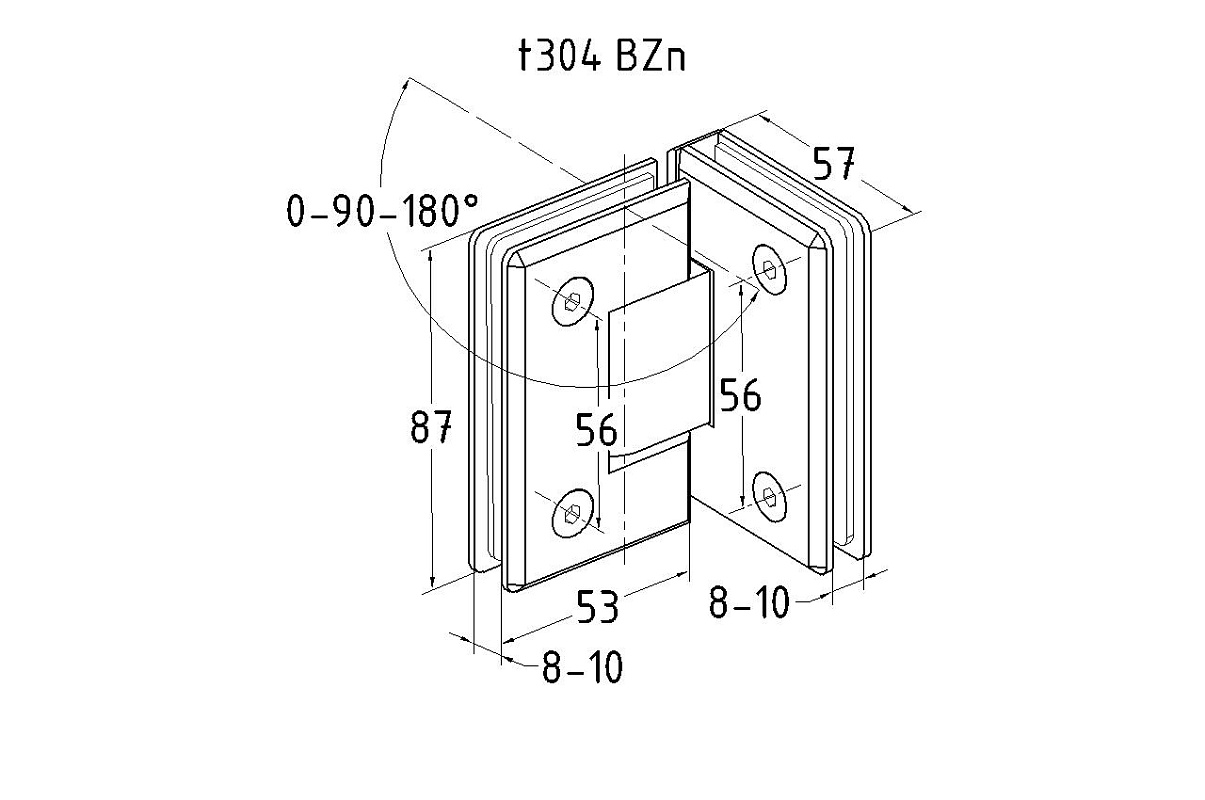 Петля для душевой кабины стена-стекло, AISI 304 t323 PSS