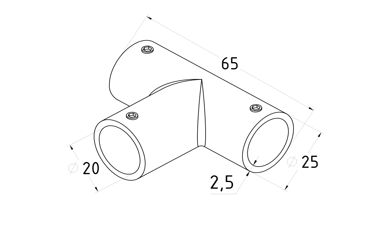Труба вставляется в тройник со всех сторон и фиксируется с помощью шестигранника