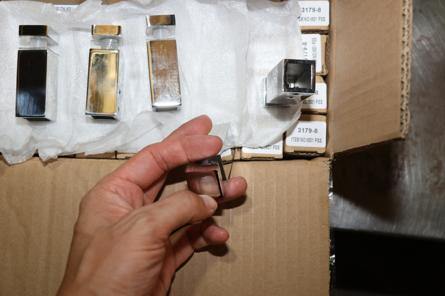 Предназначен для соединения штанги в душевых кабинах, позволяя соединить ее без сварки. Служит для крепления прямоугольного трека к стеклу. Крепится к стеклу через отверстие. Габаритные размеры прямоугольной станки составляют 15х15 мм.