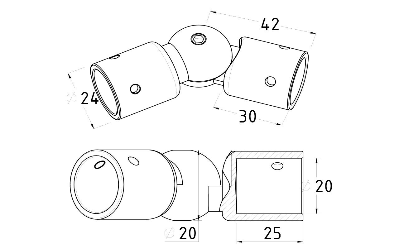 Соединитель труба-труба произвольный угол, нерж. шлифованный