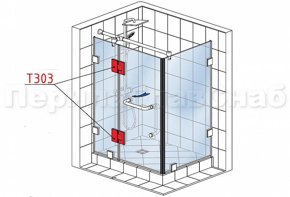 Петля из нержавеющей стали с полированной поверхностью из нержавеющей стали предназначена для стыковки между собой конструкционных элементов из стекла, толщина которых находится в диапазоне от 8 до 10 мм. Максимальный вес двери на 2 петли составляет 45 кг. В конструкции заложена система скрытого крепежа. Имеет функцию доводчика до закрытия от 25°. Максимальный угол разведения стыковочных элементов в плане составляет 180°