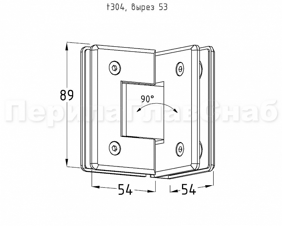 Петля для душевой кабины стекло-стекло 90° 90х55 мм цинк, полированная t304 PZn