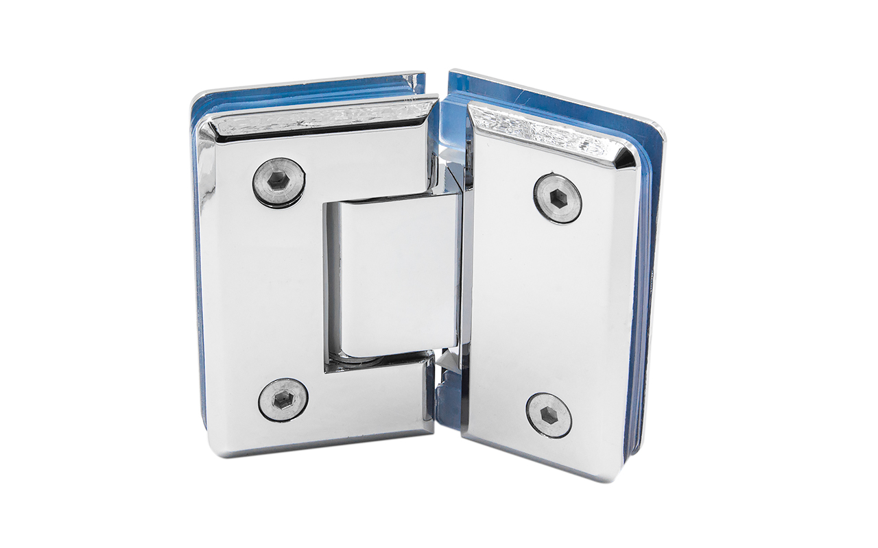 для стыковки между собой конструкционных элементов из стекла, толщина которых находится в диапазоне от 8 до 10 мм. В ней реализована функция самозакрытия и поворота в обе стороны. Петля стекло-стекло крепится с обеих сторон на стеклянные поверхности, плотно прижимаясь к ним своими металлическими зажимами.