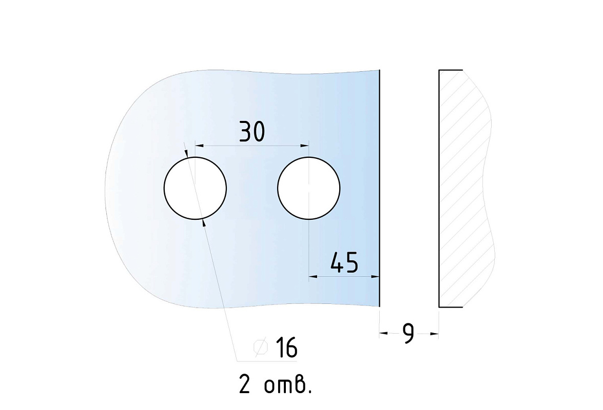 Стекло с готовым вырезом, фиксируется, при закручивании используется уплотнитель. Если между стекло-стена остаётся щель, то используем уплотнитель.