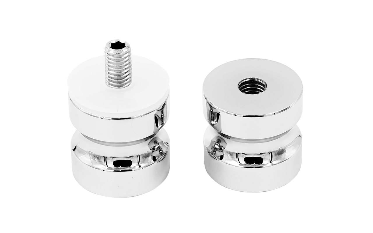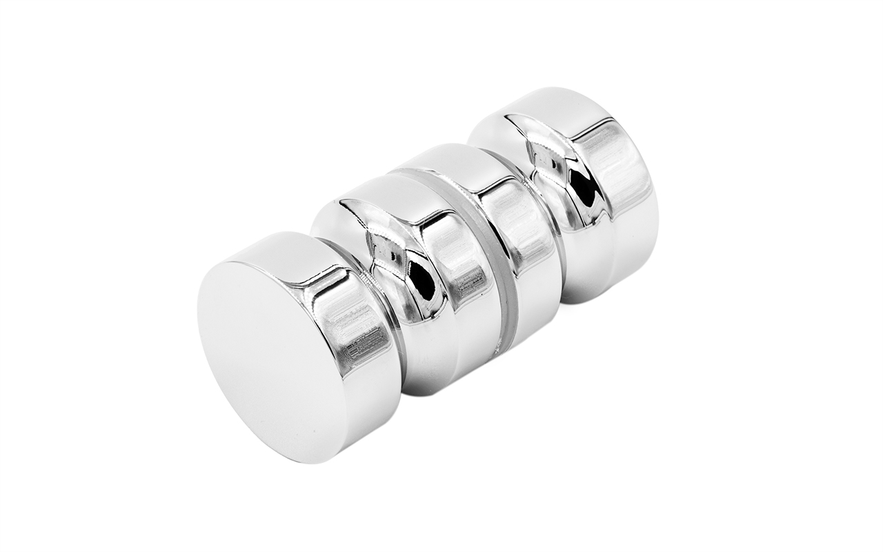 Дверная ручка «кноб», алюминий-хром, полированная, самосборная. Диаметр отверстия в стекле - 12 мм