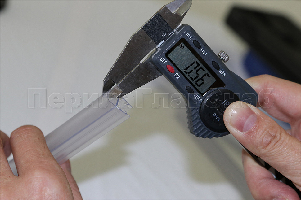 Уплотнитель имеет исполнение прозрачной поверхности, выполнен из материала ПВХ. Имеет A-образный профиль. Толщина одного типоразмера составляет 1.5 мм, длина – 2200 мм. За счет своих свойств (стойкость к щелочам, минеральным маслам и многим кислотам) прекрасно подходит для крепления стеклянного листа по всему периметру. Позволяет герметично соединять стеклянные панели с дверью, что гарантируют отсутствие течи в вертикальной части конструкции.