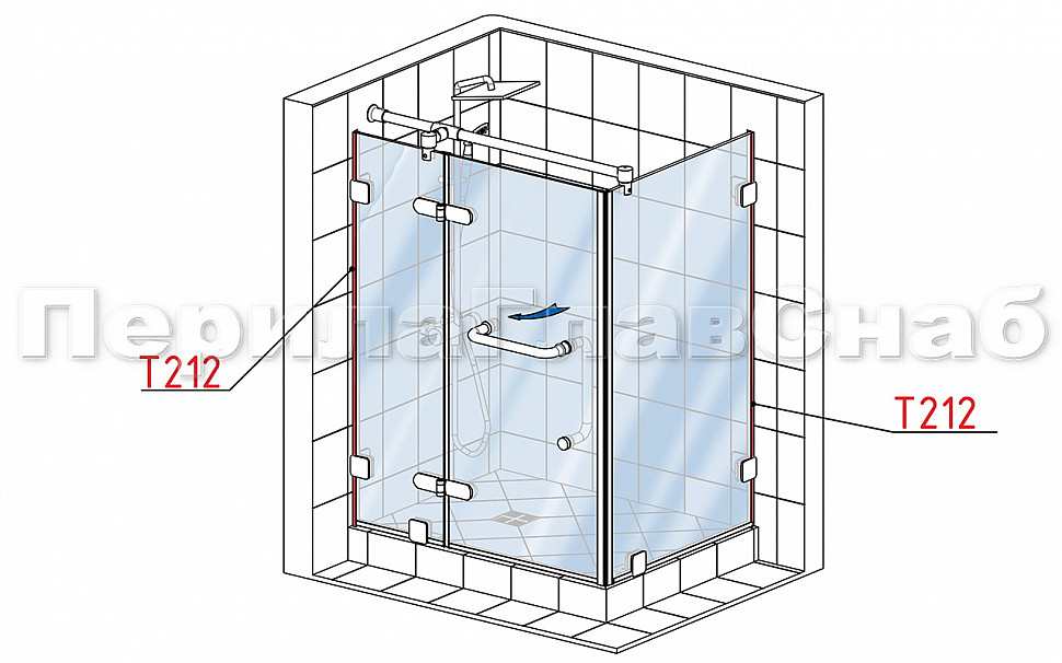 Комплект раздвижной системы для стеклянной душевой, нержавеющая сталь AISI 304, полированная t401 PSS купить в Красноярске