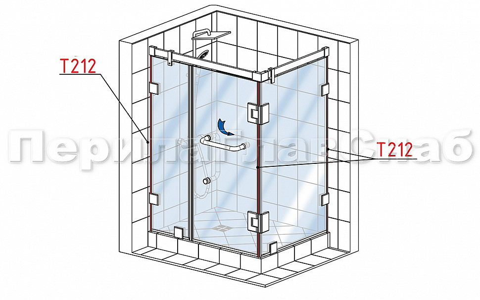 Уплотнитель для стекла в душевую кабину 8 мм, дверь-стекло 2200 мм t212