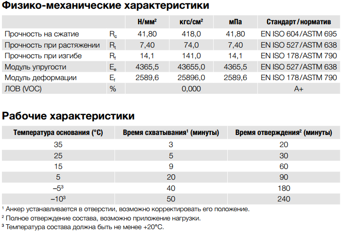- Время отверждения +25°С / 30 мин –5°С / 90 мин