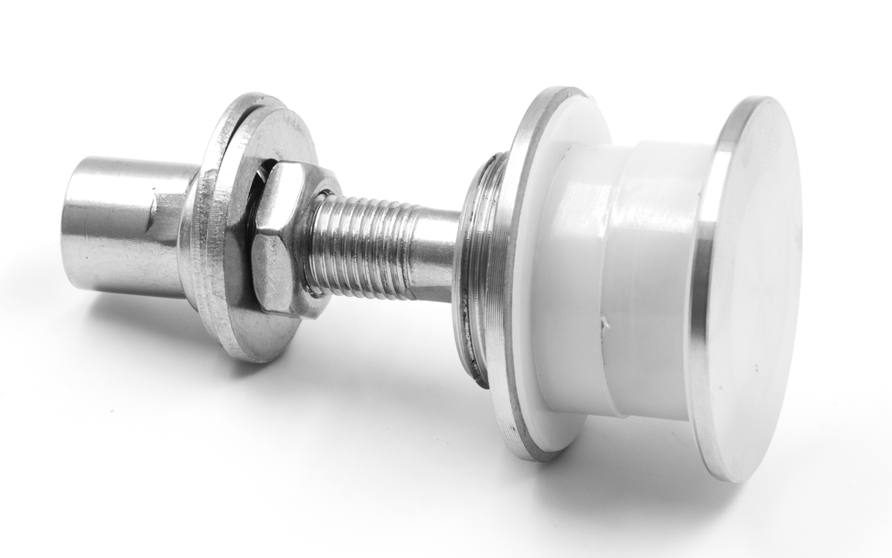 Рутель для вантового крепления козырьков, регулируемый, разборный, под стекло от 10 до 28 мм, полированный, диаметр внешнего кольца 52, шпилька М14 (AISI 304) k269-5