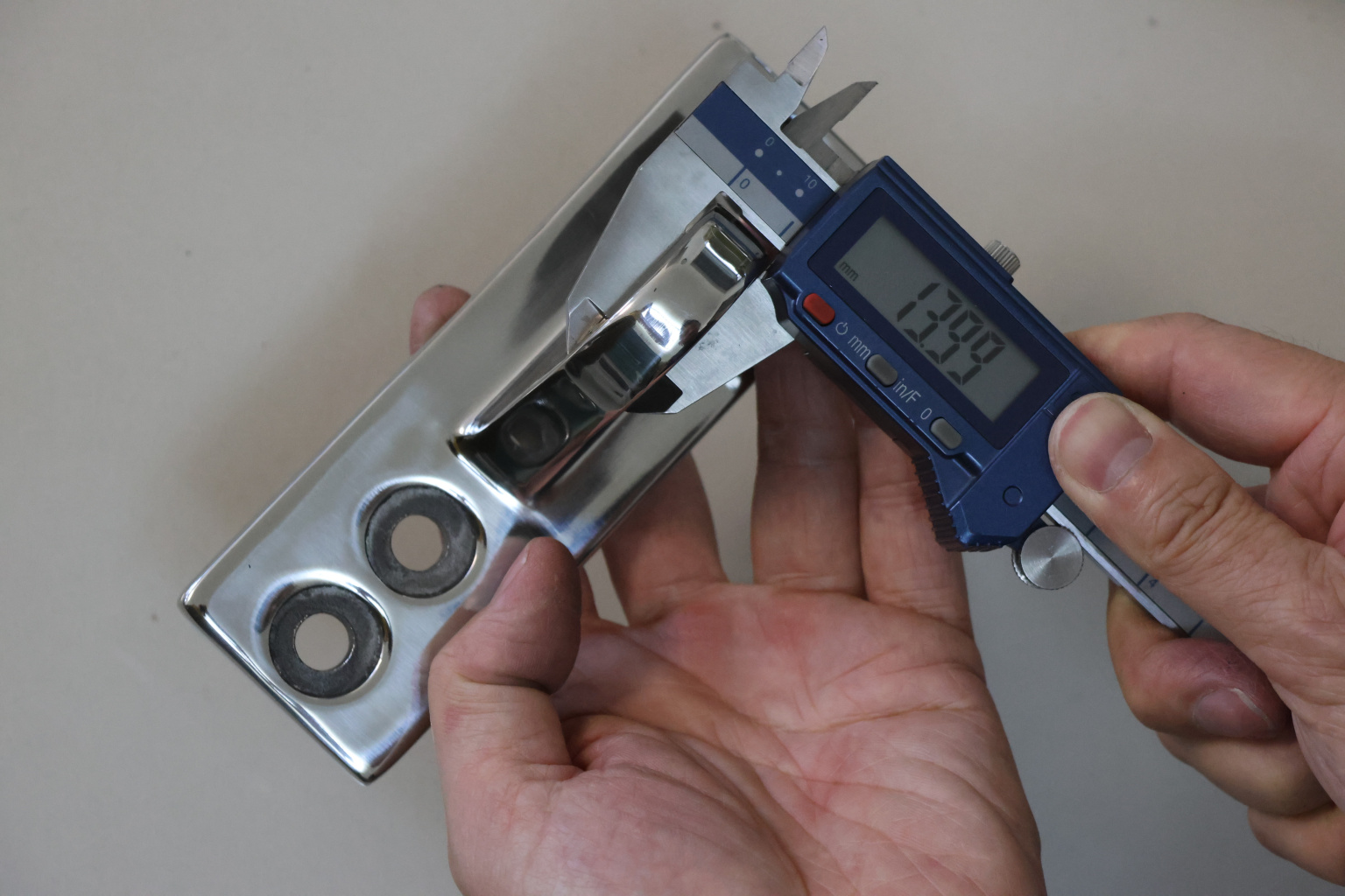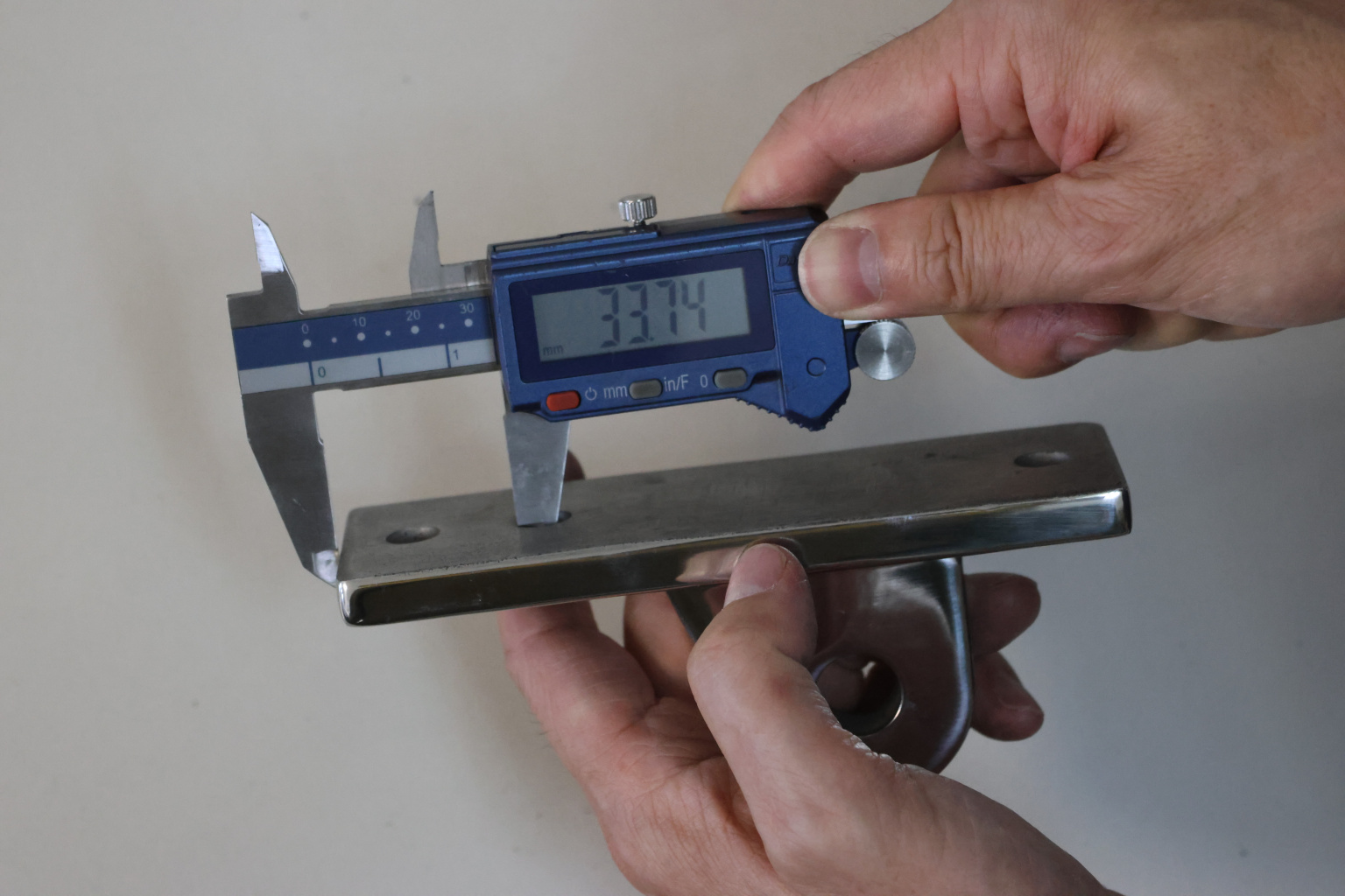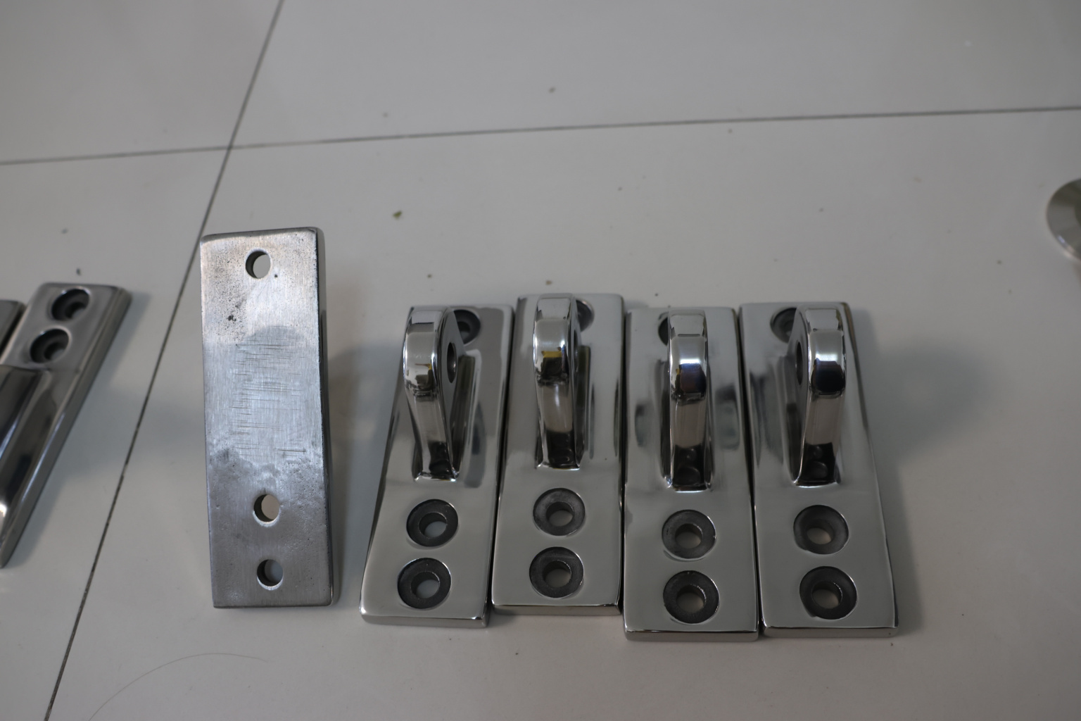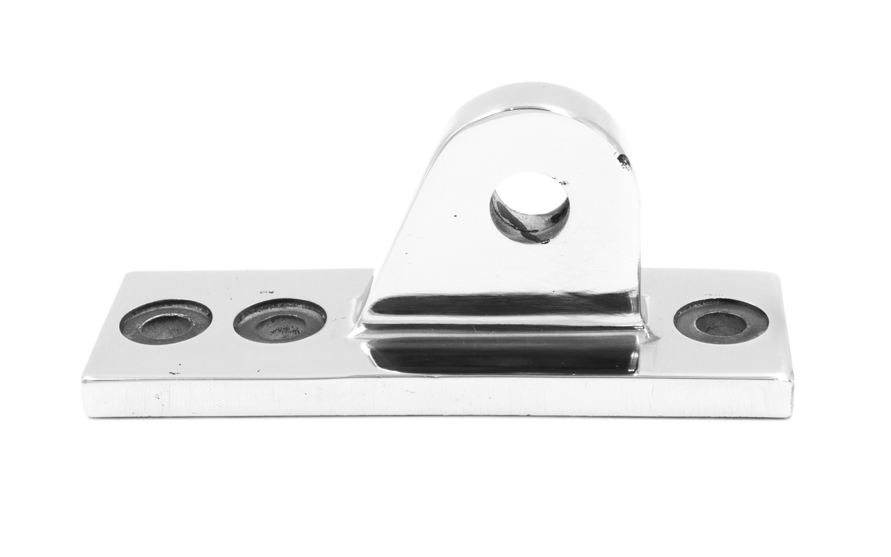Крепление тяги к стойке. Полированная деталь. Состоит из крепёжного элемента с тремя технологическими отверстиями для крепления к стойке и выносной части с отверстием диаметром 16 мм для крепежа наконечника тяги. Выполнена из стали AISI 304. Ширина детали – 50 мм. Выносная часть выступает на 63 мм от стены.