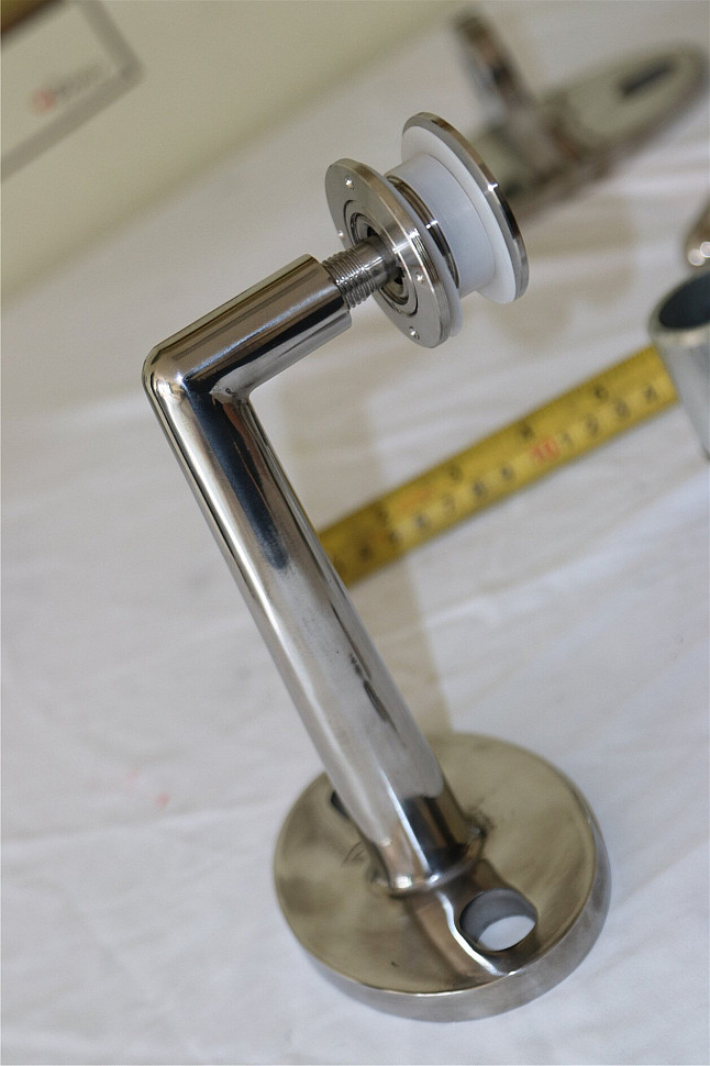 Рутель шарнирный (стеклодержатель) используется при спайдерном остеклении, остеклении фасадов, остеклении вертикальных фасадов, остеклении вентилируемых фасадов, монтаже входных козырьков из стекла, монтаже входных козырьков из поликарбоната. Отверстие в стекле под рутель нужно делать 40 мм. Предназначен для стекла или поликарбоната от 10 до 26 мм. Шаг резьбы рутеля 1,5 мм. При желании можно монтировать более тонкое стекло с применением прокладочных элементов.