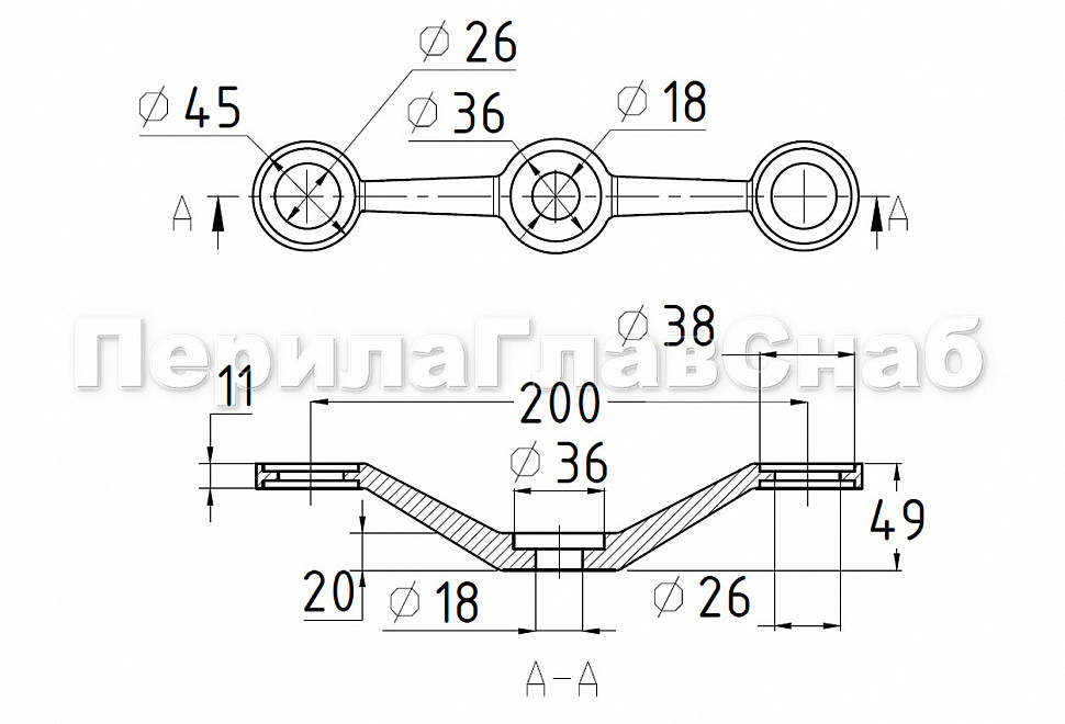 I-спайдер-200мм, AISI 304, 2х26х38, 1х18х36/40мм, нагрузки: 1кН, 2кН