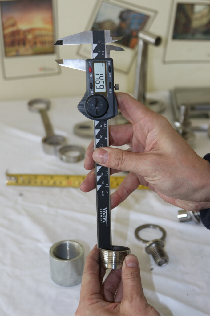 О-болт. Деталь состоит из трёх основных элементов: основания, регулировочной шайбы и винта. Основание выполнено из чёрного металла, а шайба и винт из стали AISI 304. Основание имеет диаметр 44 мм. Винт с прослабленной резьбой М16. Регулировочная шайба позволяет устанавливать расстояние крепящегося элемента в диапазоне одного сантиметра. Выдерживает нагрузку более 300 кг.