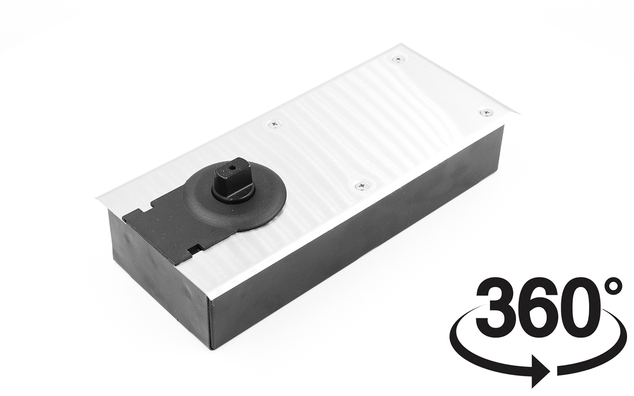 Доводчик t186 SSS монтируется в пол на глубину до 50мм., имеет 2-х диапазонное регулирование скорости закрытия, максимальный угол открывания двери 116*.