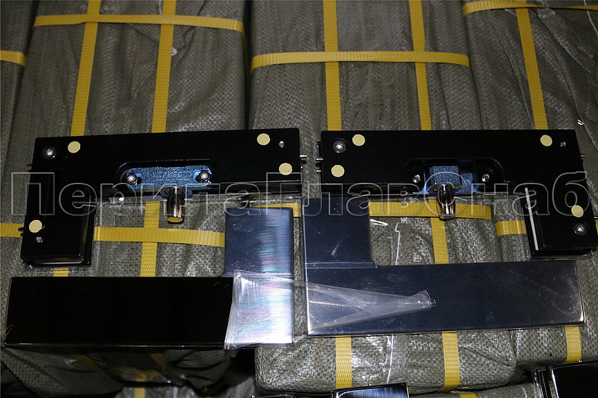 сбоку нажимаем на крепления крышек и снимаем. Отвинчиваем винты, и фиксируем фитинг в подготовленный вырез в стекле. Далее закручиваем и фиксируем обратно крышки.