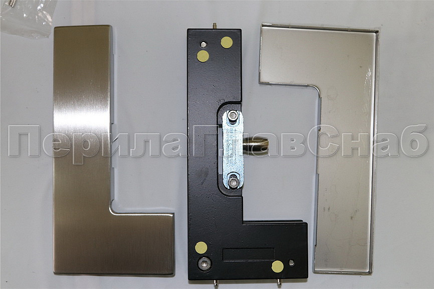 сбоку нажимаем на крепления крышек и снимаем. Отвинчиваем винты, и фиксируем фитинг в подготовленный вырез в стекле. Далее закручиваем и фиксируем обратно крышки.