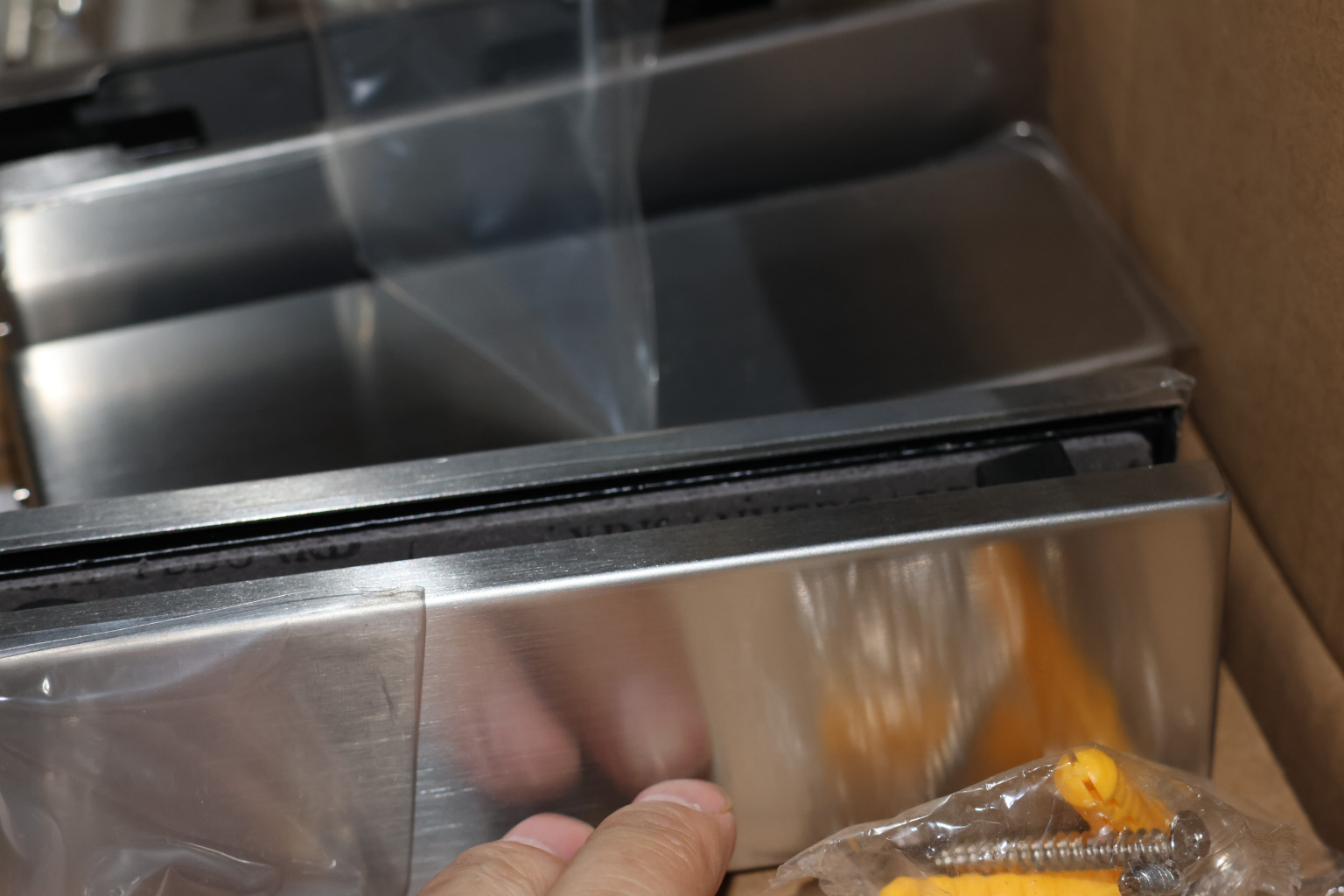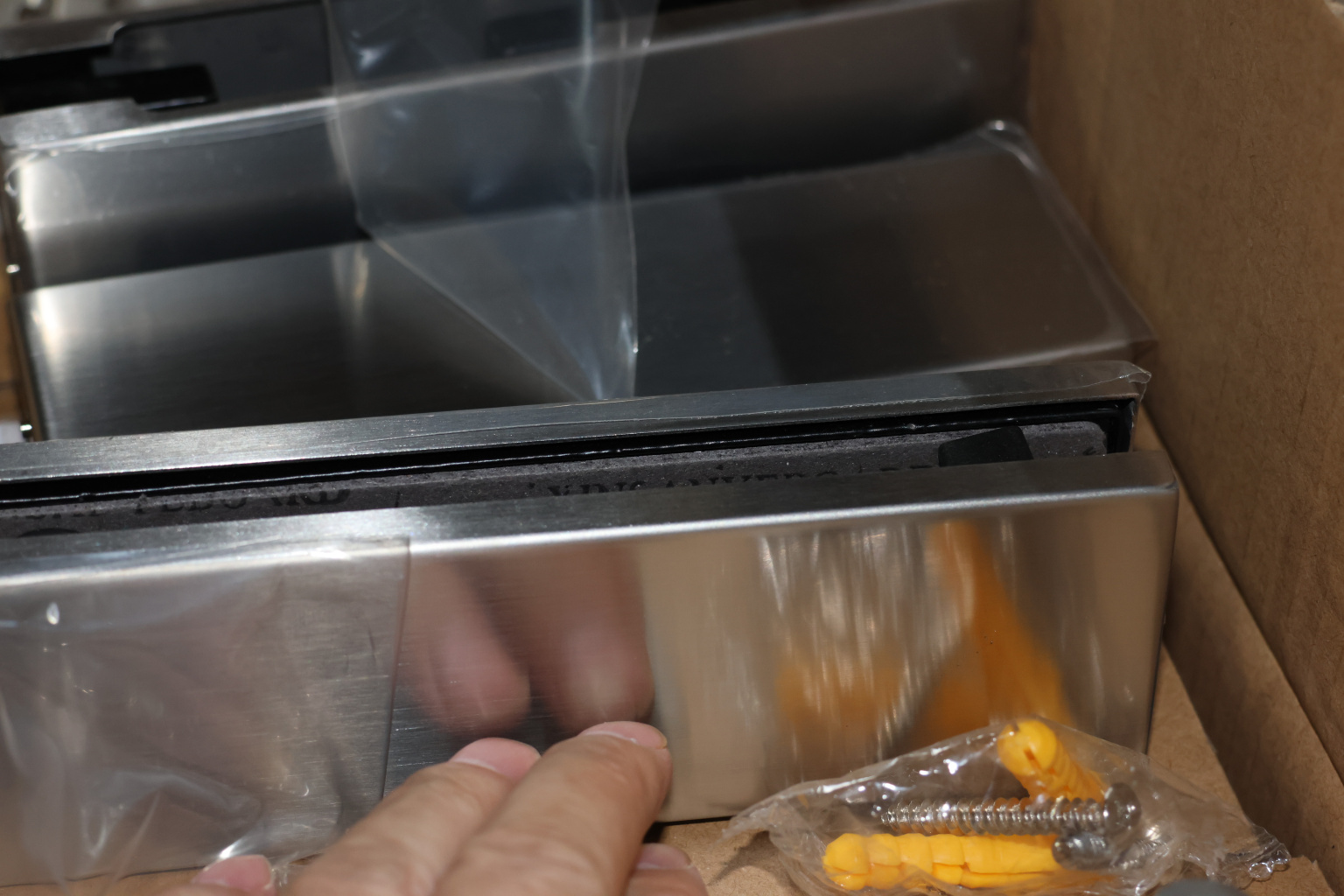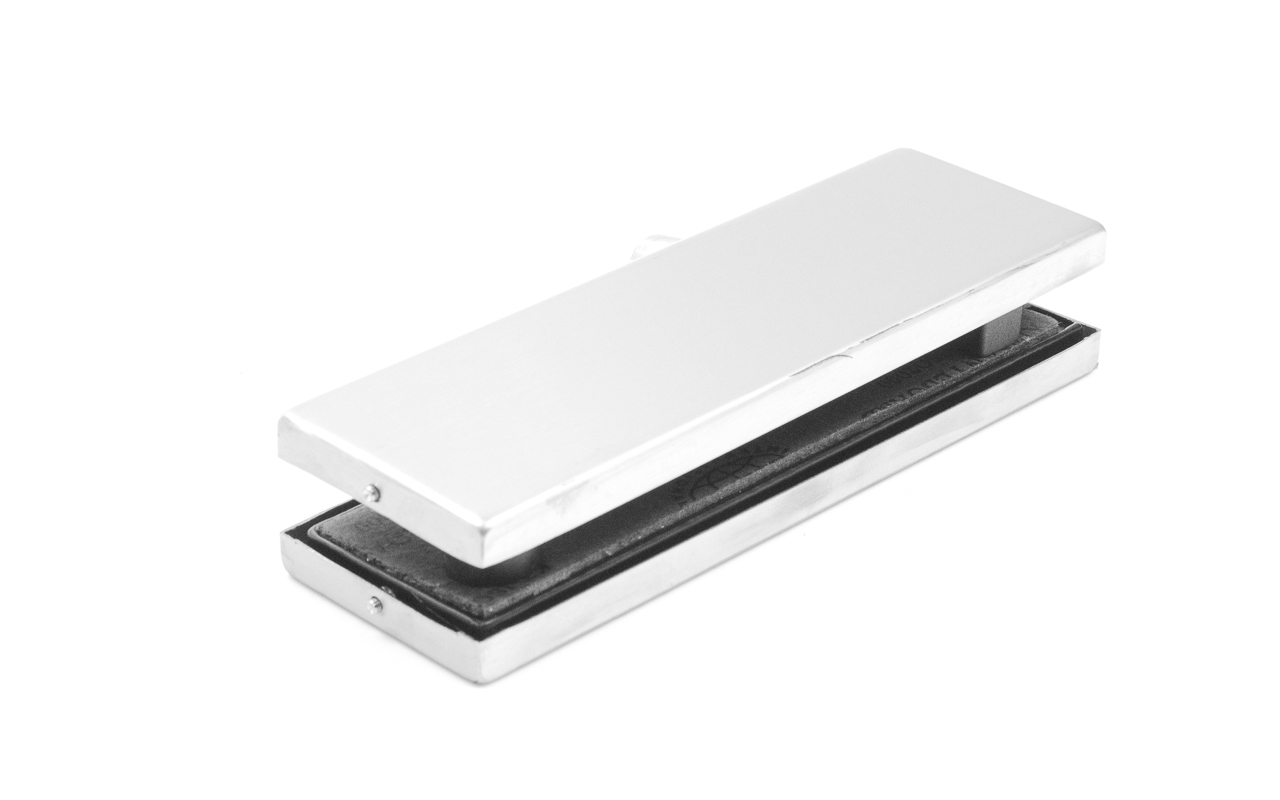 фиксируем к стене дюбель саморезами, далее сбоку нажимаем на крепления крышек и снимаем. Отвинчиваем винты, и фиксируем фитинг в подготовленный вырез в стекле. Далее закручиваем и фиксируем обратно крышки.