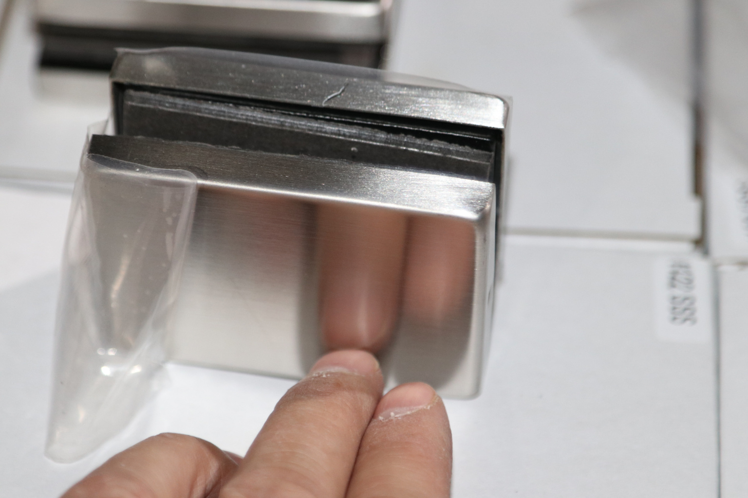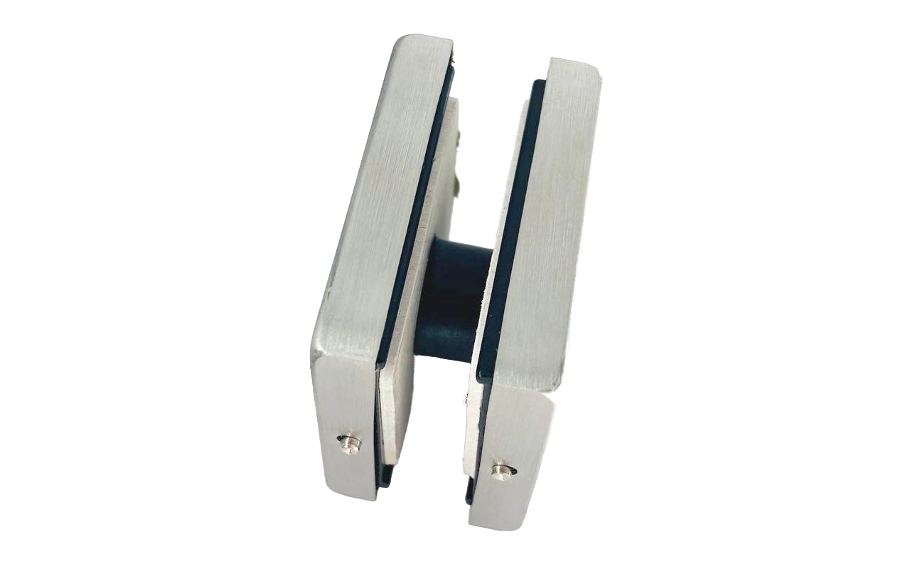 Коннектор соединяет 2 стеклянных полотна, выравнивает их в одной плоскости.