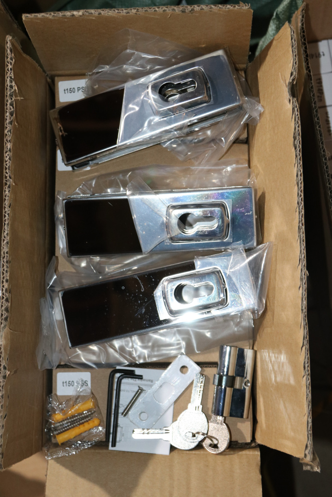 Замок для стеклянной двери угловой с круглым ригелем комплект, полированный t150 PSS