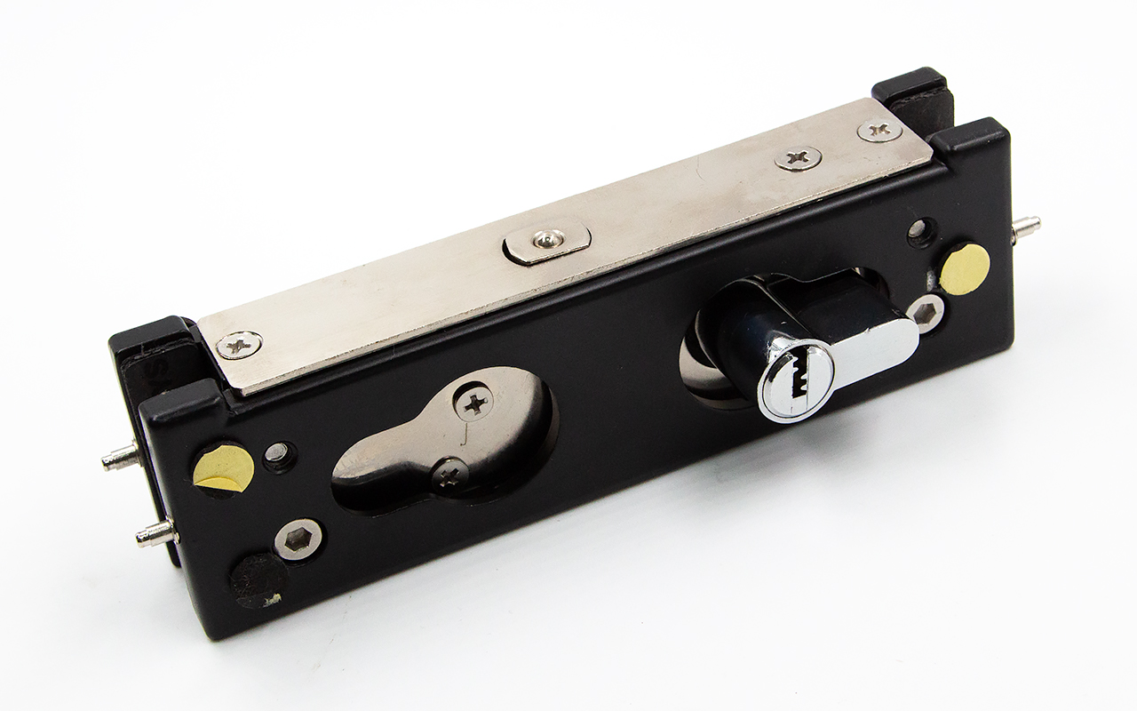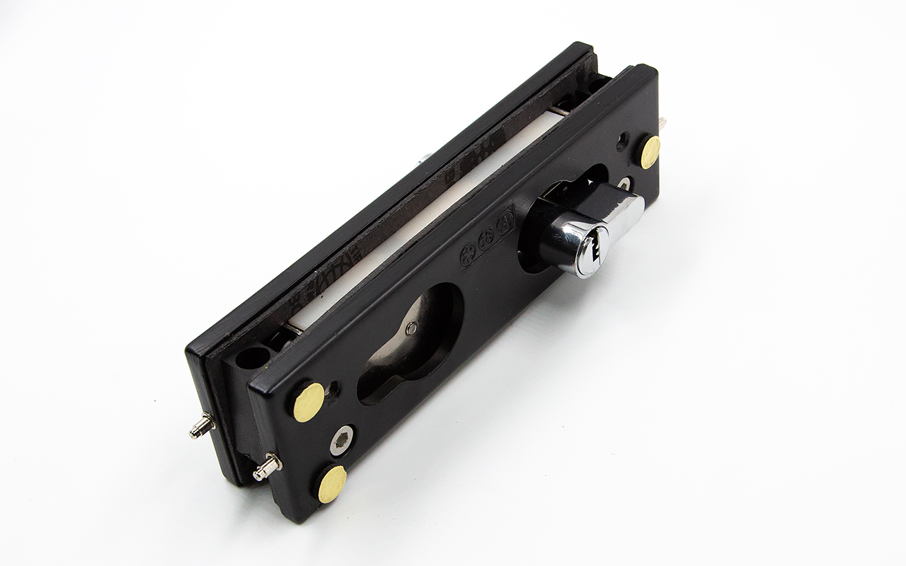 - Надежно запирает стеклянные двери. Проверено на практике: скорее не выдержит стеклянное полотно двери, чем ригельная часть замка.