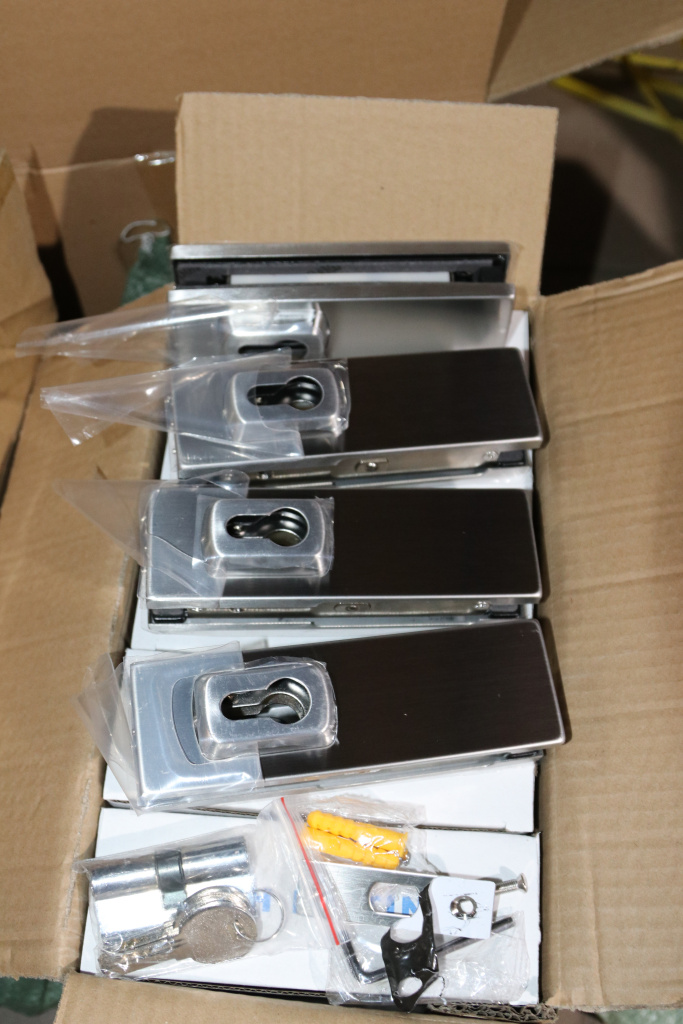 Сбоку нажимаем на крепления крышек и снимаем. Отвинчиваем винты, и фиксируем замок в подготовленный вырез в стекле. Далее закручиваем и фиксируем обратно крышки. Ответную часть крепим под замком с пробуренным отверстием под ригель.