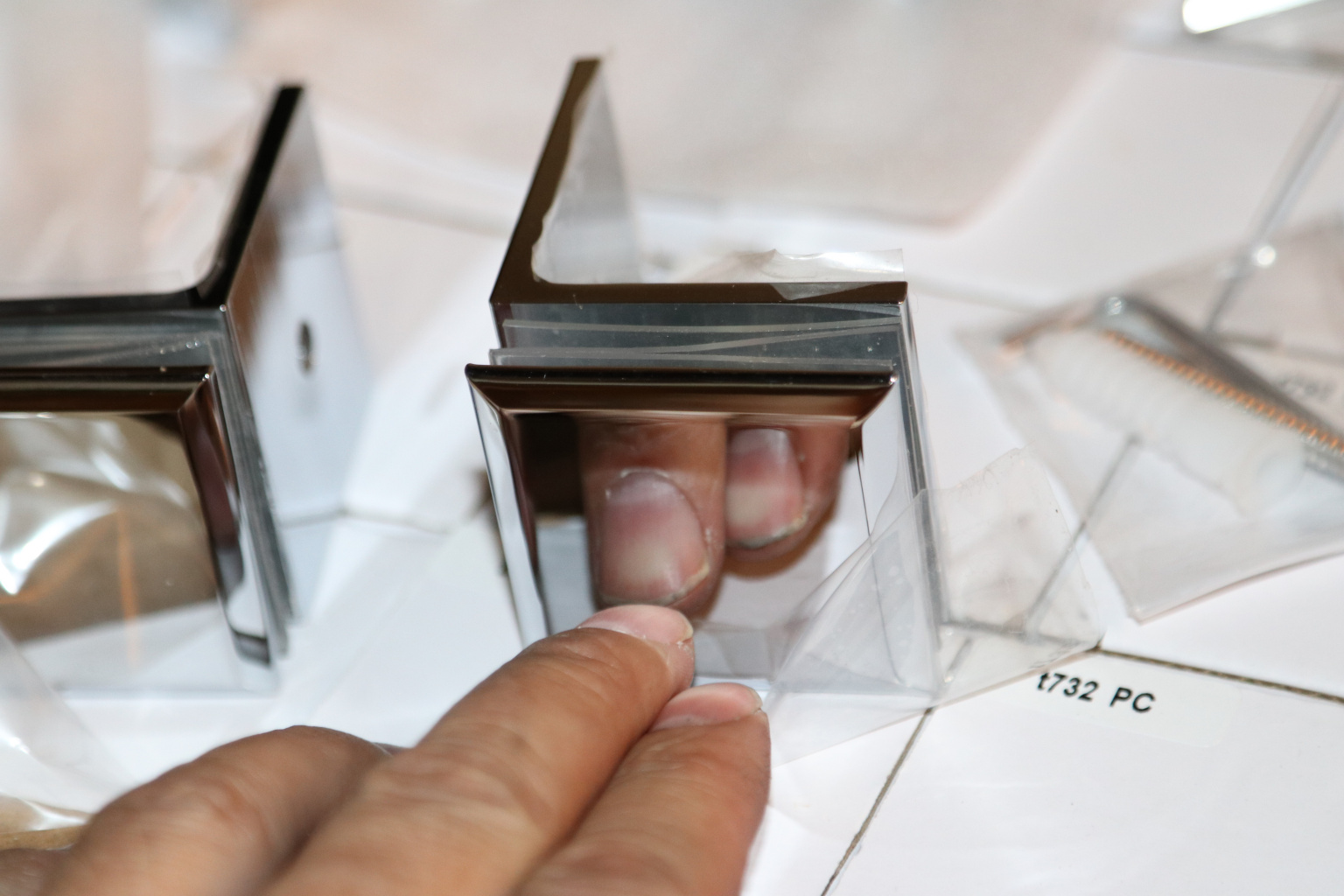 Коннектор для душевой кабины, стена-стекло 90°, 45х45 мм. Материал - латунь-хром, поверхность - полированная