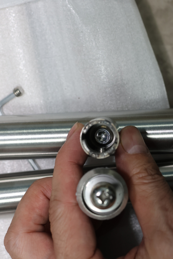 у основания ручки откручиваем с помощью шестигранника винты, делим ручку на две части, в заранее заготовленные отверстия вырезы в стекле 10-12 мм фиксируем первую часть ручки в отверстиях и с обратной стороны ответную часть затягиваем с помощью шестигранника