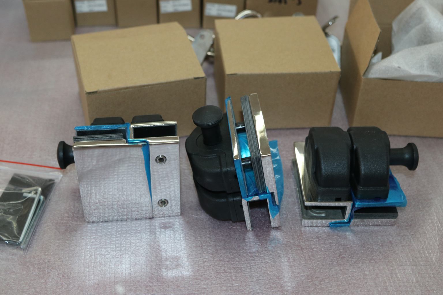 разбираем замок, фиксируем в заранее заготовленное отверстие, замок закручиваем обратно. Аналогично фиксируем ответную часть замка на неподвижное стекло