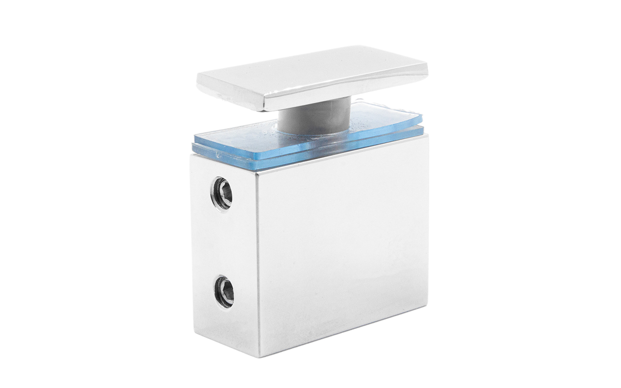 Предназначен для соединения штанги в душевых кабинах, позволяя соединить ее без сварки. Служит для крепления прямоугольного трека к стеклу. Крепится к стеклу через отверстие 14мм. Габаритные размеры прямоугольной станки составляют 30х10 мм.