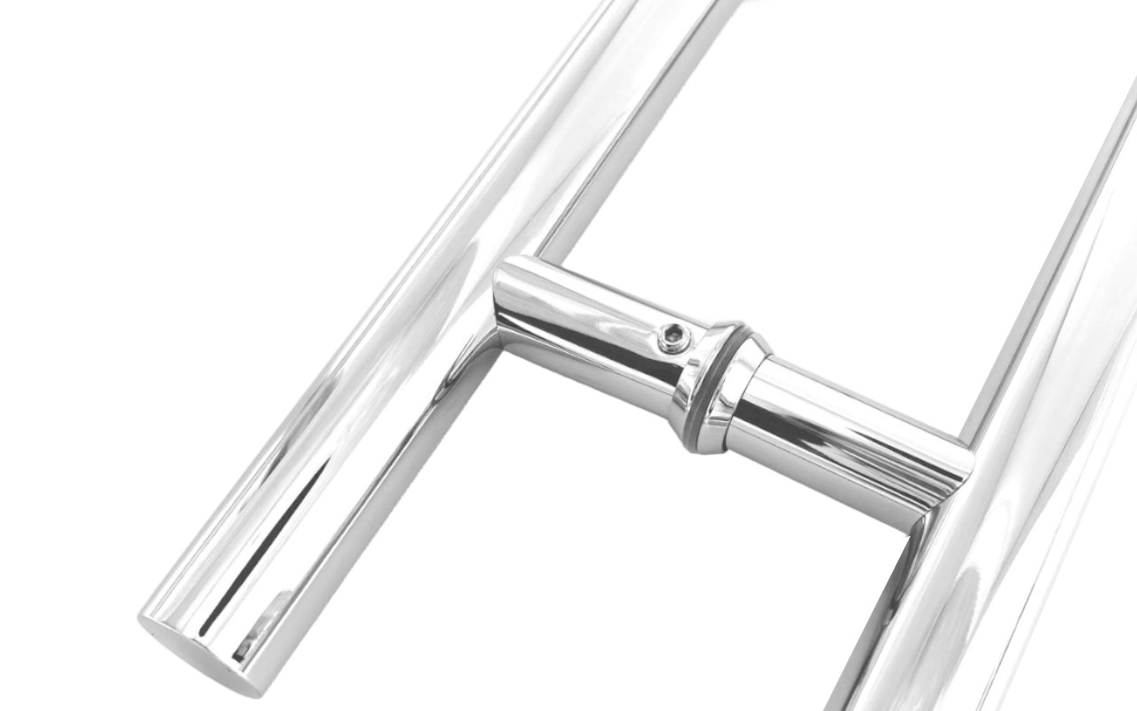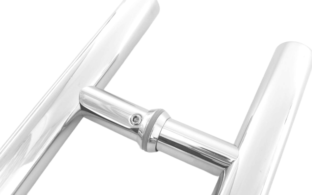 Ручка для стеклянной двери рейлинг двухсторонняя для стекла 8-12 мм, 25x275x450 мм, полированная, марка стали- AISI 304