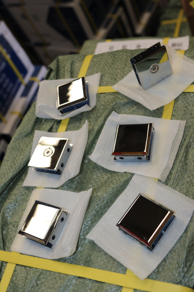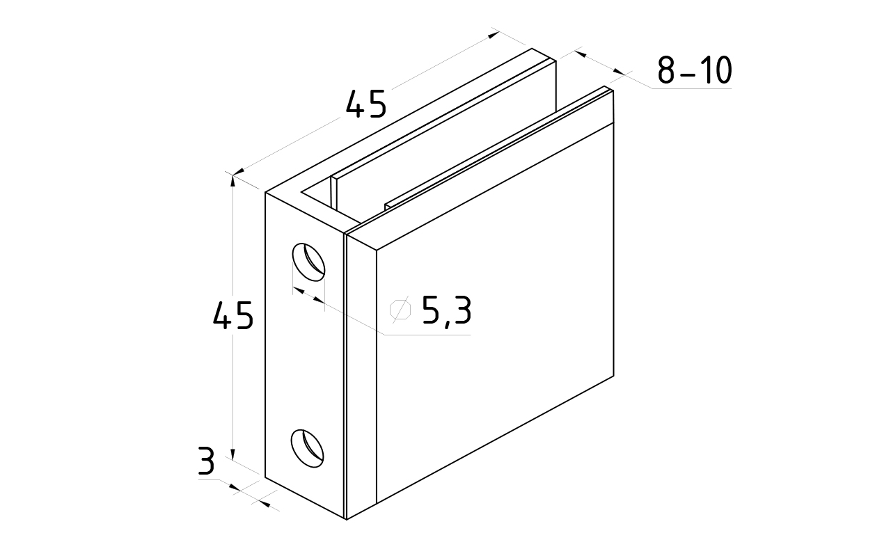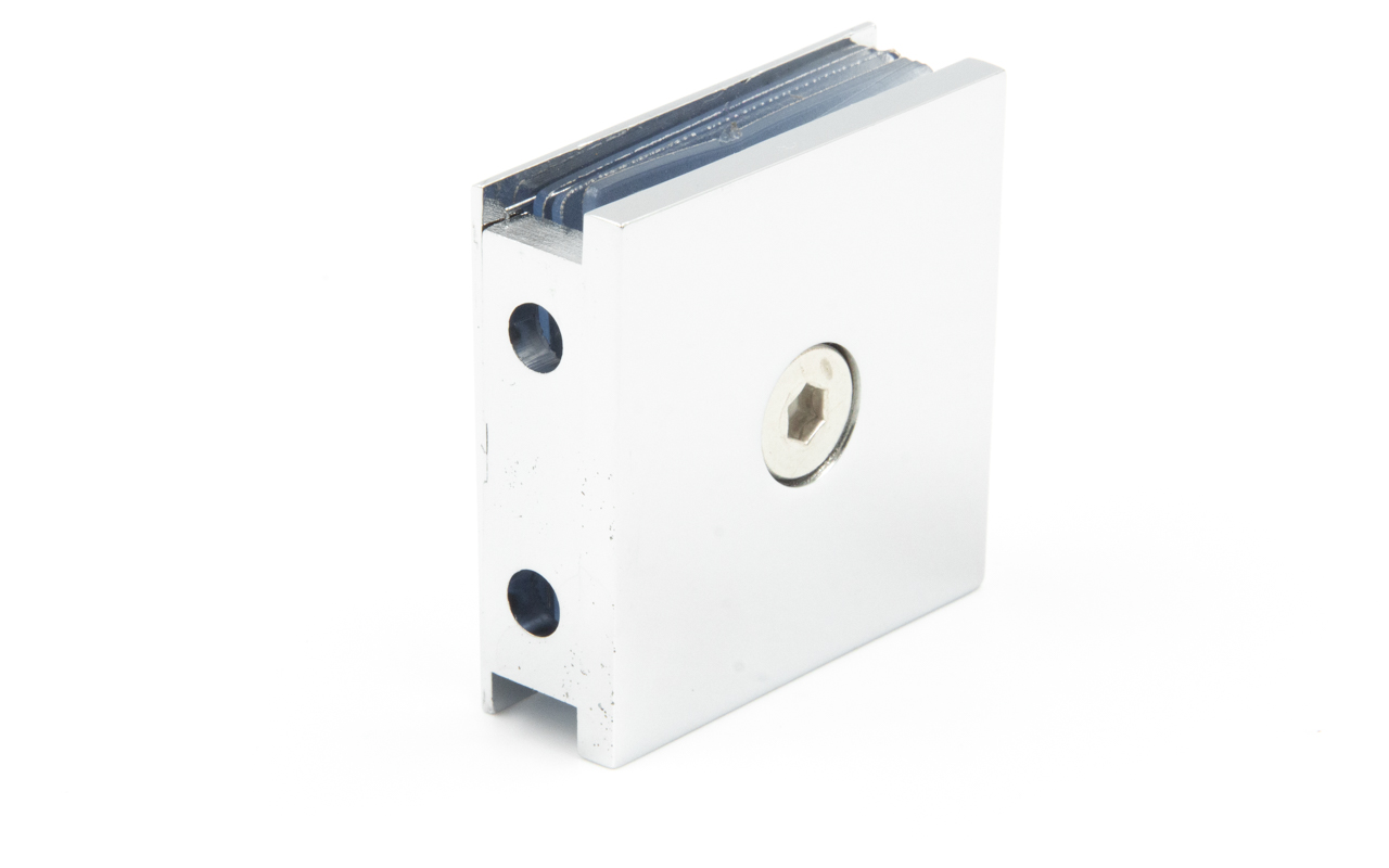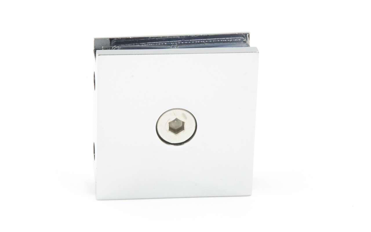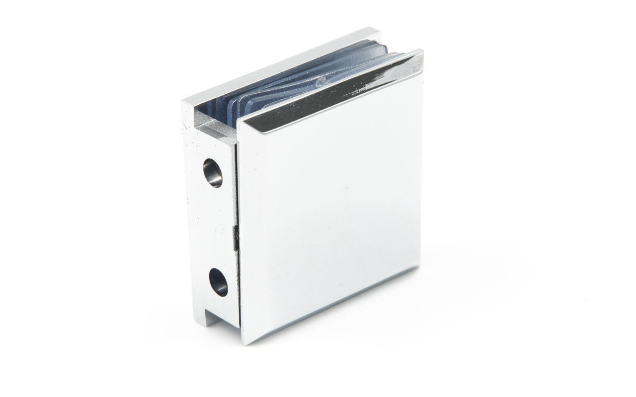 Коннектор для душевой стена-стекло 45х45 мм, 90°, с двумя отверстиями, цинк, полированный t731 PZn