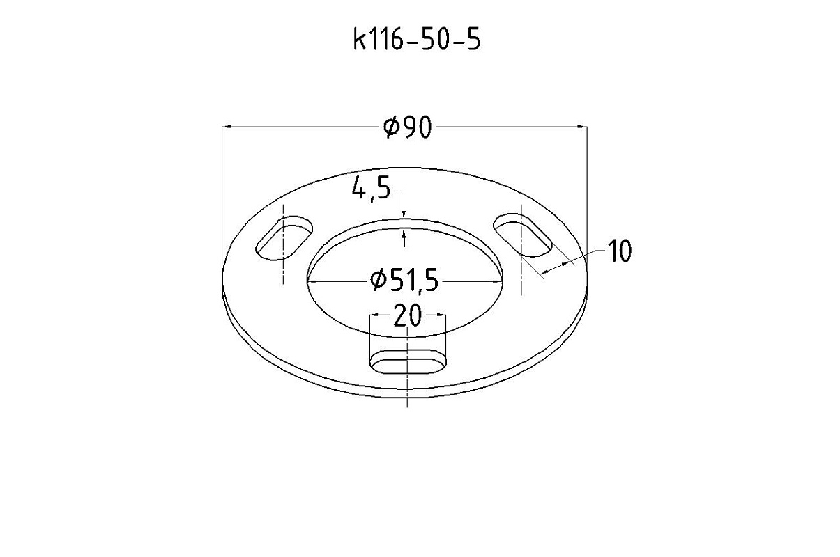 Фланец стойки 50/90 х 5 (4,3) х AISI 304 #200 3 отв х М10 х 20 k116-50-5