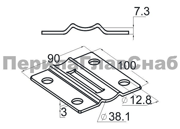 90х100х3 мм, вынос 7.3 мм, отверстия Ø12.8 мм