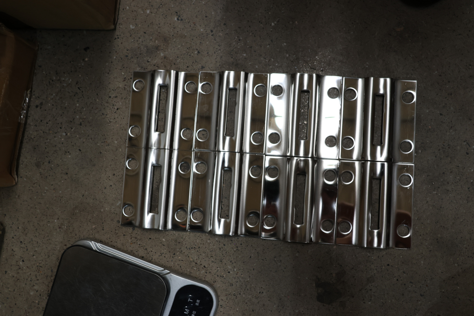 Боковой крепеж стойки под диаметр 38.1 мм. Деталь полированная, штампованная, сварная. Марка стали - AISI 304