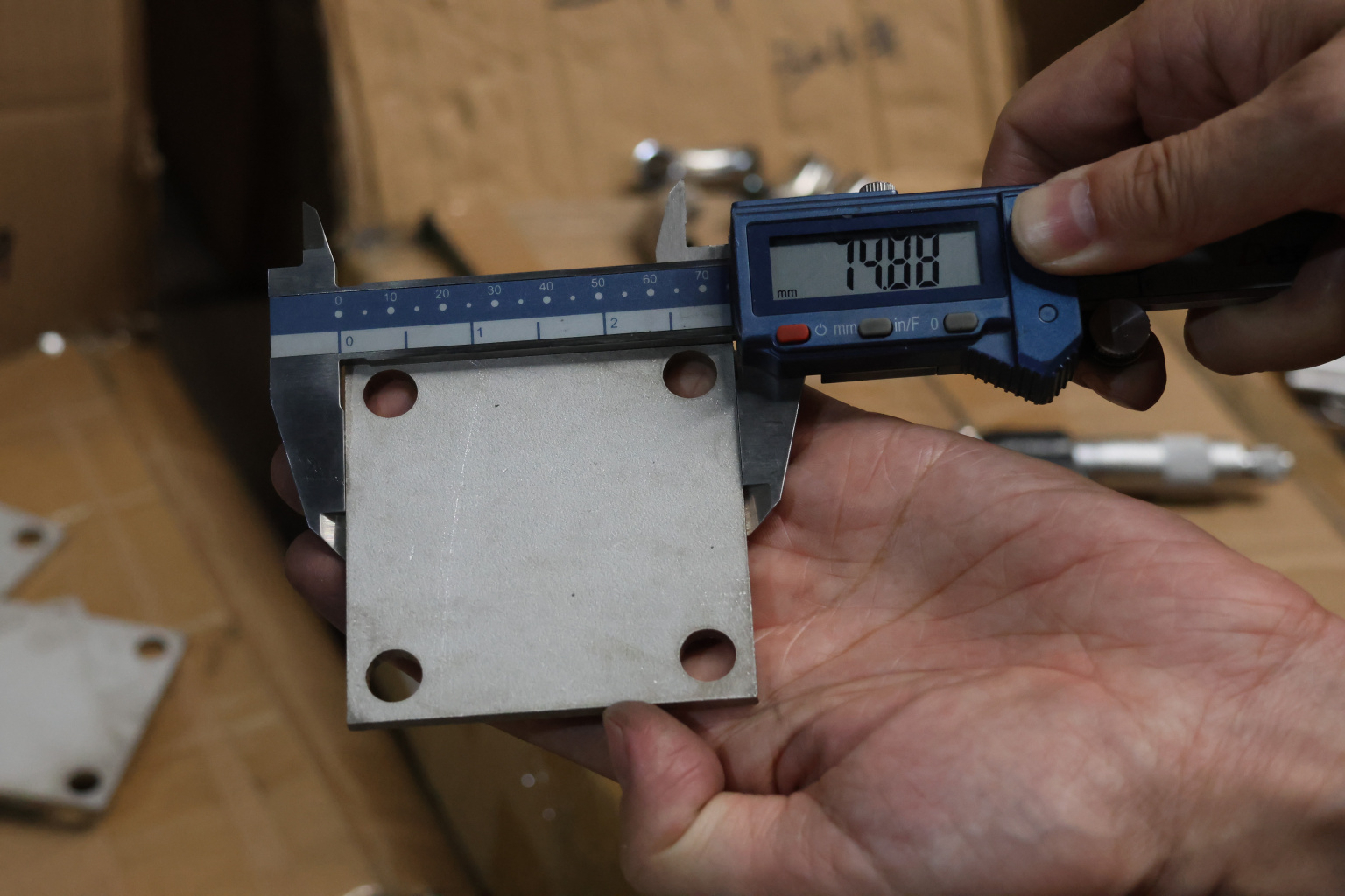 Фланец стойки 75х75х5 (4.3).Способ сборки - самосбор. Марка стали - AISI 304. Деталь имеет 4 отверстия. k115-5 аналог Ф-0115