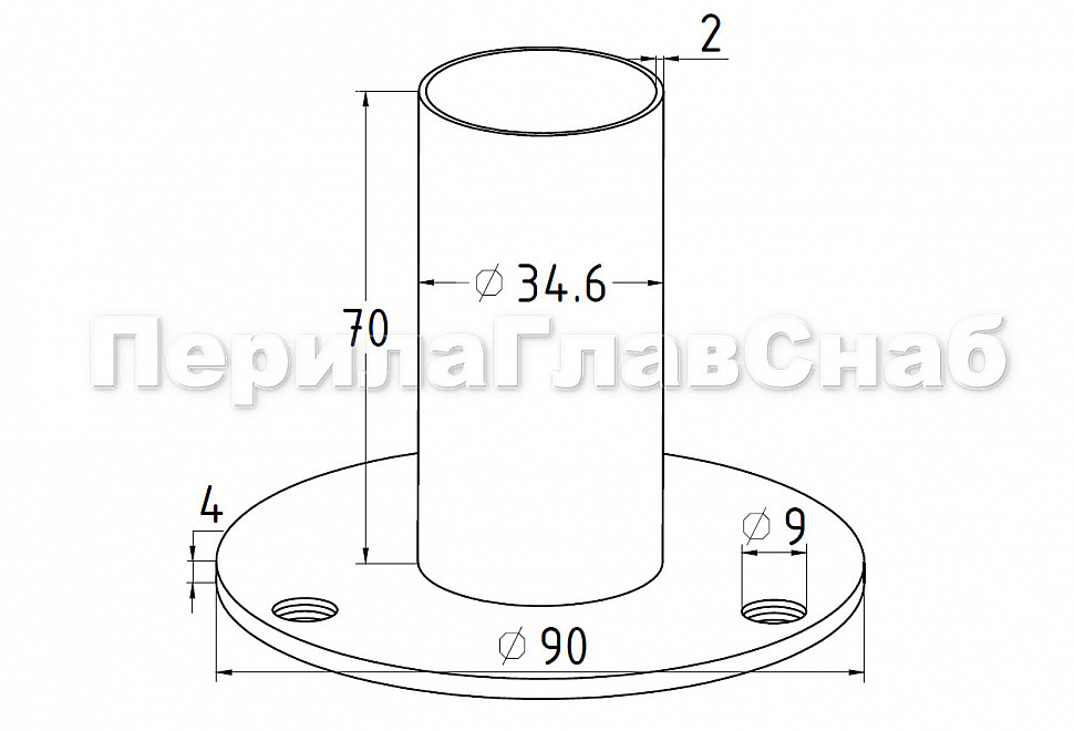 Деталь для крепления стойки из трубы Ø38.1 мм (k819, k849). Основание закрывается декоративной крышкой k201.