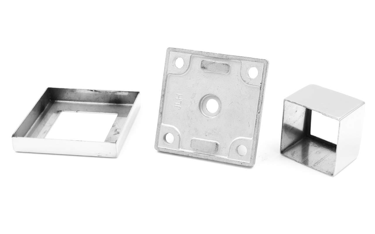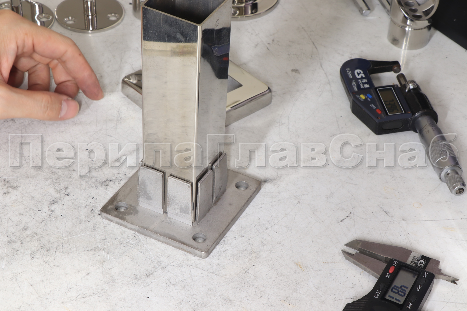Цанга для стойки 40х40мм, под анкер 8 мм или на 4 анкера М8. Для надежной установки на деревянную ступень, плитку, бетон