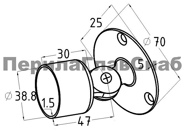 Применяется для внутреннего крепления круглой трубы поручня лестничных перил Ø38.1 мм в стену под любым разумным углом.