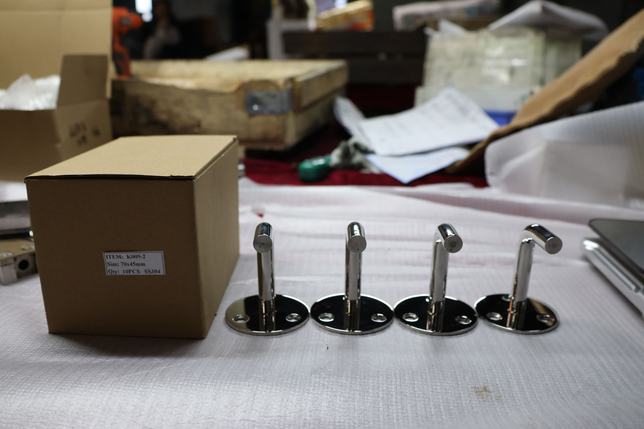 Устанавливается в стену на три самореза (анкера) Ø3 мм. Сам поручень крепится при помощи сварки.