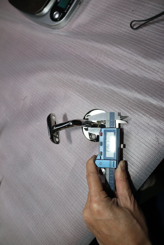 Благодаря оптимально подобранному выносу, пристенный поручень достаточно удален от поверхности стены, чтобы не задевать скользящей вдоль трубы поручня рукой идущего по лестнице человека. Но при этом поручень располагается близко к стене, дабы не сужать свободное пространство полезной ширины лестничного марша. Габариты: вынос 70х45 мм, Ø60х3мм, ложемент 25 х 45 х 2 мм