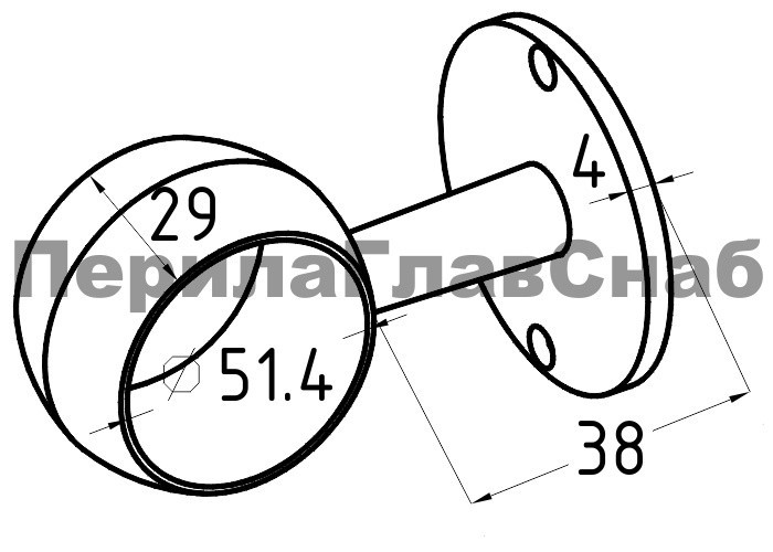 Фланец стойки 38/80 х 5 (4,3) х AISI 304 #200 3 отв х М10 х 20 k116-38-4